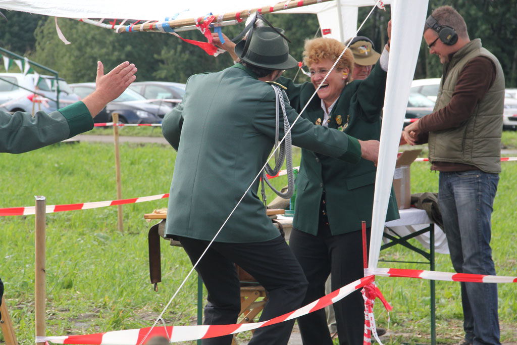 Gegen 17:00Uhr war es dann soweit: Angelika Kochanetzki schoß den Vogel von der Stange und darf sich ab sofort Königin Angelika II. (Kochanetzki),‘erste echte Schützenkönigin‘ von Polsum, nennen. Es gratulieren ihr vom ganzen Herzen die Polsumer Schützen mit einem dreifach Horrido!!!